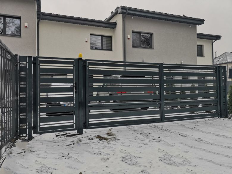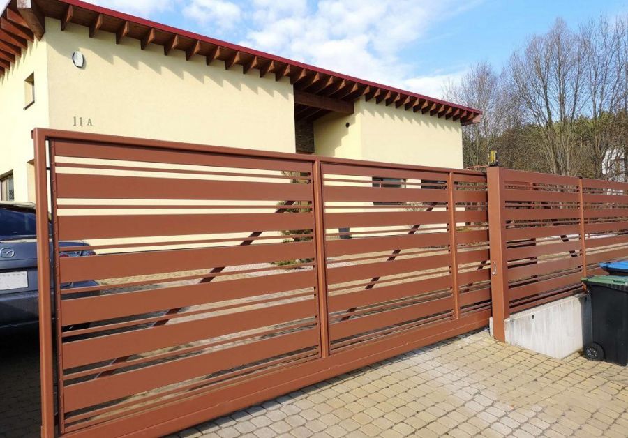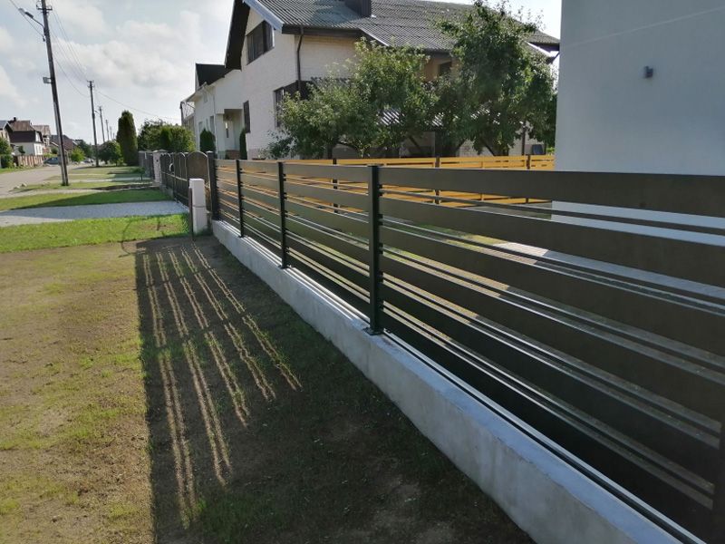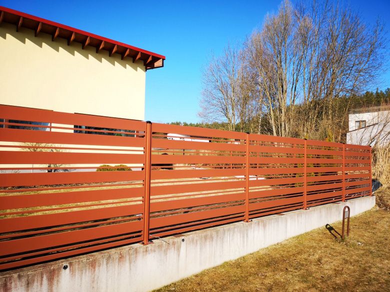 Модель забора KOMBI формируется из двух профилей (120x20 и 20x20 мм), располагаемых на равных расстояниях 30 мм. Большая разница в ширине профилей придает этому забору игривость и эксклюзивность, но при этом он остается массивным и прочным.